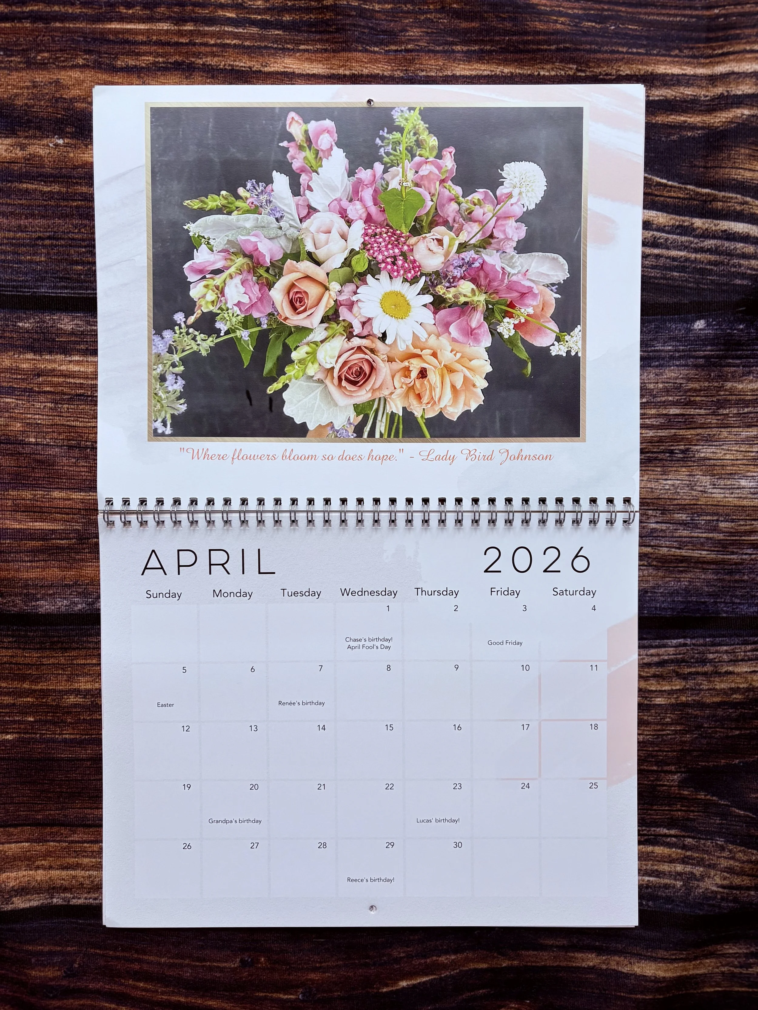 Our beautiful calendars feature 12 months of our gorgeous flowers, along with inspirational quotes and blooms to get you through the whole year.